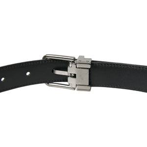• Dolce & Gabbana Black Leather Silver Metal Buckle Belt