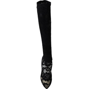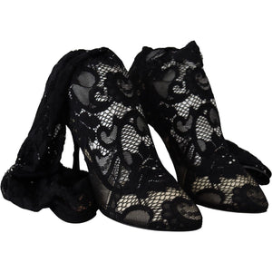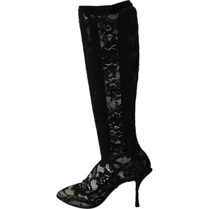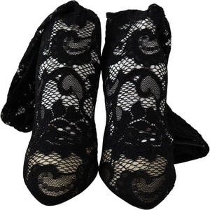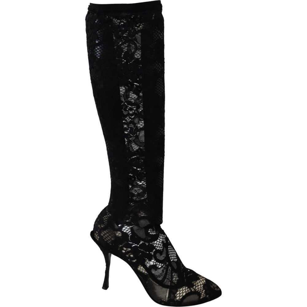 Dolce & Gabbana Black Taormina Lace Socks Boots Shoes Pumps