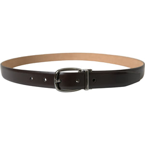 Dolce & Gabbana Dark Brown Leather Silver Metal Buckle Belt