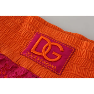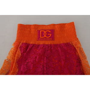 Dolce & Gabbana Pink Orange Lace Cotton High Waist Shorts