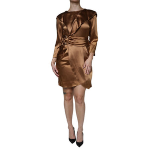 Emporio Armani Brown Satin Long Sleeves Wrap Sheath Mini Dress