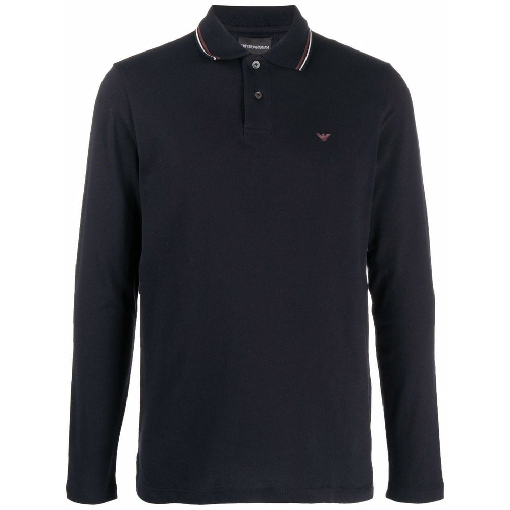 • Emporio Armani T-shirts and Polos Blue, navy blue cotton polo with logo print, long sleeves, and polo collar.