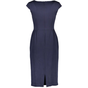 SHORT DRESS, WIDE SHOULDERS, ROUND NECK, BACK ZIP CLOSURE, LOGO