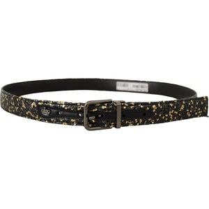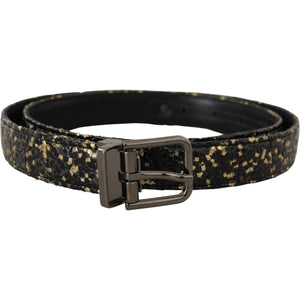 Dolce & Gabbana Gold Black Two-toned Leather Chrome Buckle Belt