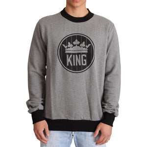 Dolce & Gabbana Gray Crown King Cotton Pullover Sweater