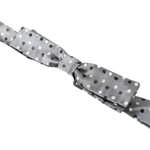 Dolce & Gabbana Gray Polka Dot Silk Adjustable Men Neck Papillon Bow Tie