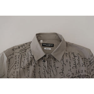 Dolce & Gabbana Gray Printed Cotton Slim Dress GOLD Shirt