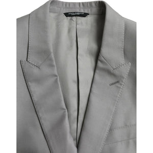 Dolce & Gabbana Gray Wool Peak Single Breasted Coat Blazer