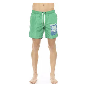 Indulge in unparalleled style as you hit the beach with Bikkembergs’ latest creation – the Degradé Print Swim Shorts. Exuding boldness, these shorts flaunt an arresting green shade that seamlessly transitions in intensity as it captures the eye. The elastic waistband with a snug drawstring ensures your comfort is never compromised, while side pockets meld functionality with fashion. Make a trendy splash in these Bikkembergs swim shorts, the quintessential blend of sophistication and playfulness.