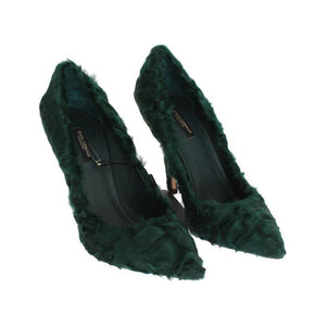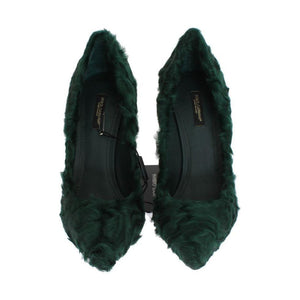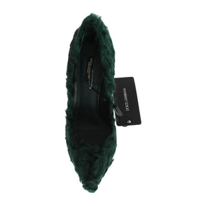 Dolce & Gabbana Green Xiangao Lamb Fur Leather Pumps