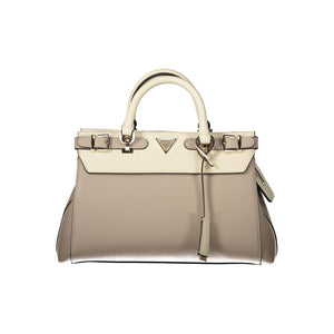 • Guess Jeans Beige Polyethylene Handbag with adjustable strap, two handles, compartments, and logo. Stylish eco-friendly fashion accessory.
