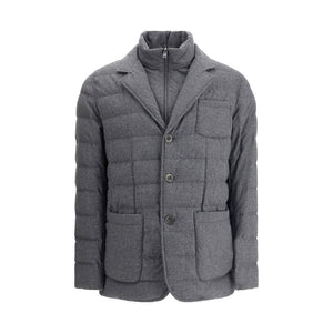 Herno’s Down Jacket with a design inspired by the classic blazer, made of wool with a mélange pattern. The model features classic lapels, front button closure and a removable zippered inner part that offers added protection and versatility. Applied welt pockets on the front, quilted design and warm but lightweight padding complete the garment. A perfect blend of sartorial elegance and outdoor functionality.