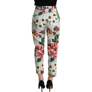 Dolce & Gabbana Light Blue Fiori Print Cotton Trouser Tapered Pants