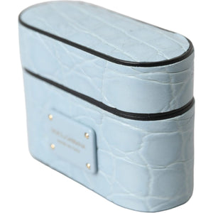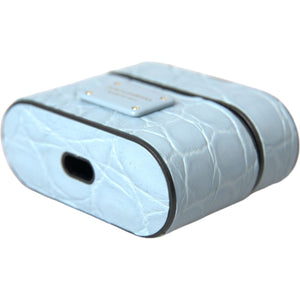 Dolce & Gabbana Light Blue Leather Metal Logo Plaque Airpods Case