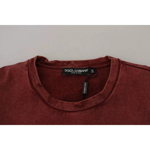 Dolce & Gabbana Maroon Printed Crewneck Tee Cotton T-shirt