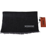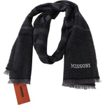 Missoni Black Striped Wool Unisex Neck Wrap Scarf