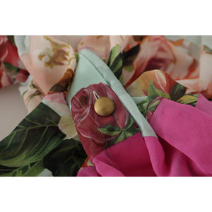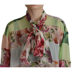 Dolce & Gabbana Multicolor Floral Patchwork Design Ascot Collar Top Blouse