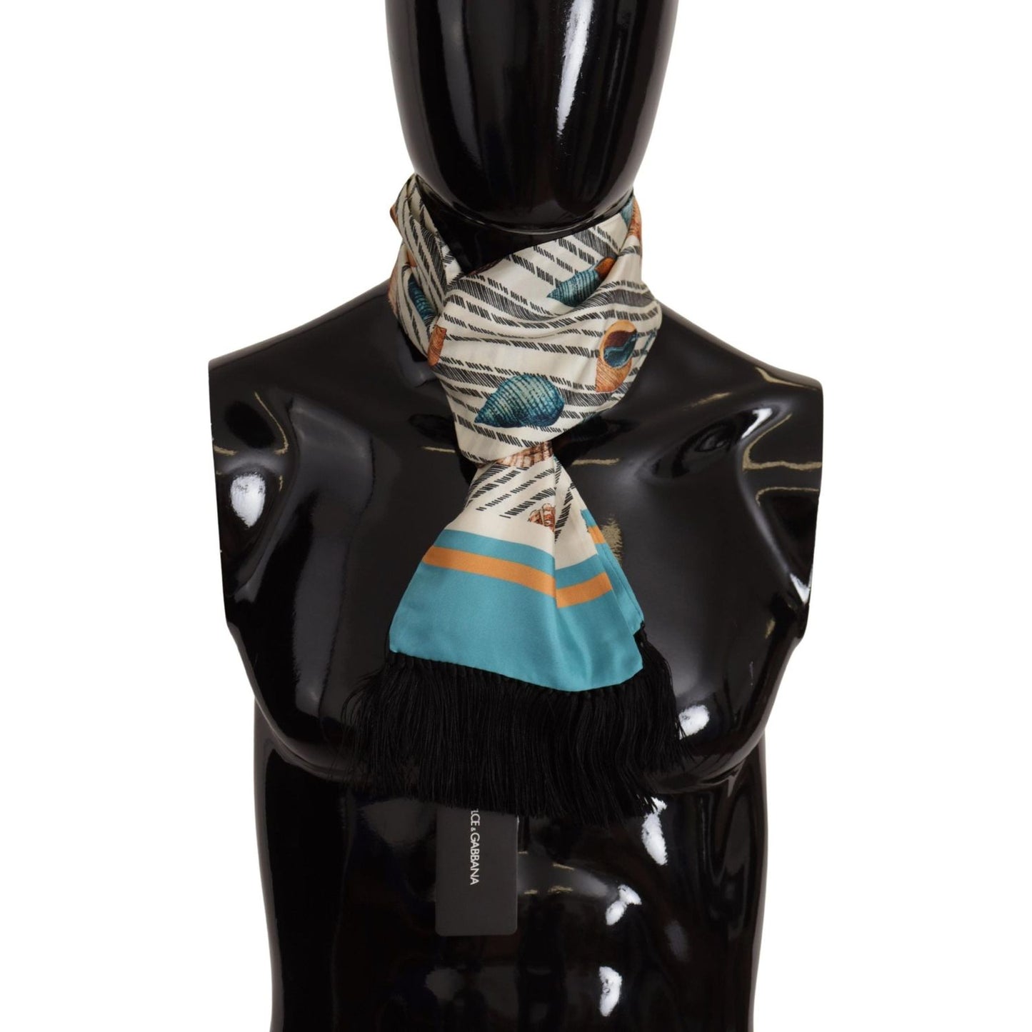 Dolce & Gabbana Multicolor Seashells DG Print Silk Shawl Fringe Scarf
