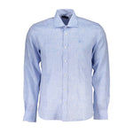 Experience the epitome of effortless sophistication with North Sails’ light blue linen shirt. Crafted with style and sustainability in mind, this regular-fit treasure features an Italian collar and elegant 1-button cuffs, perfectly finished with meticulous embroidery and the iconic North Sails logo. A true testament to fashion with a conscience, designed for the contemporary man who appreciates organic fibers and timeless charm.