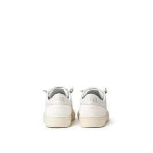 Made of soft white leather with perforated logo and suede details, enhanced with a shimmering laminated leather tongue.