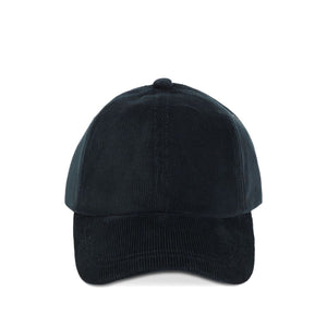 dark blue adjustable strap to the rear curved brim fabric-covered button at the crown panelled design Signature Stripe baseball cap