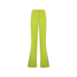 Pinko trousers in stretch crepe fabric. High waist and flared leg with central pleat. Zip and hook fastening