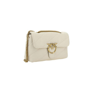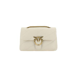 Calfskin Love Classic Shoulder Bag by Pinko, front closure with magnetic button, iconic gold-plated Love Birds logo embossed on the front, quilted and padded design, double internal compartment, sliding chain shoulder strap, iconic brand monogram embroidered tone-on-tone on the back.