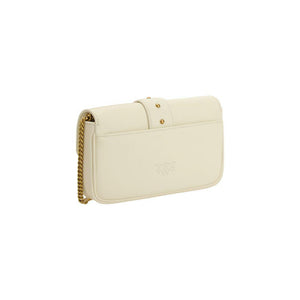 Calfskin Love One Shoulder Bag by Pinko, interlocking front fastening, adjustable and sliding chain shoulder strap, iconic Love Birds buckle embossed on the front, double internal compartment, internal zipped pocket, flat card pocket, iconic tone-on-tone embroidered brand monogram on the back.