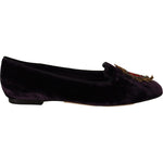 Dolce & Gabbana Purple Velvet DG Heart Loafers Flats Shoes