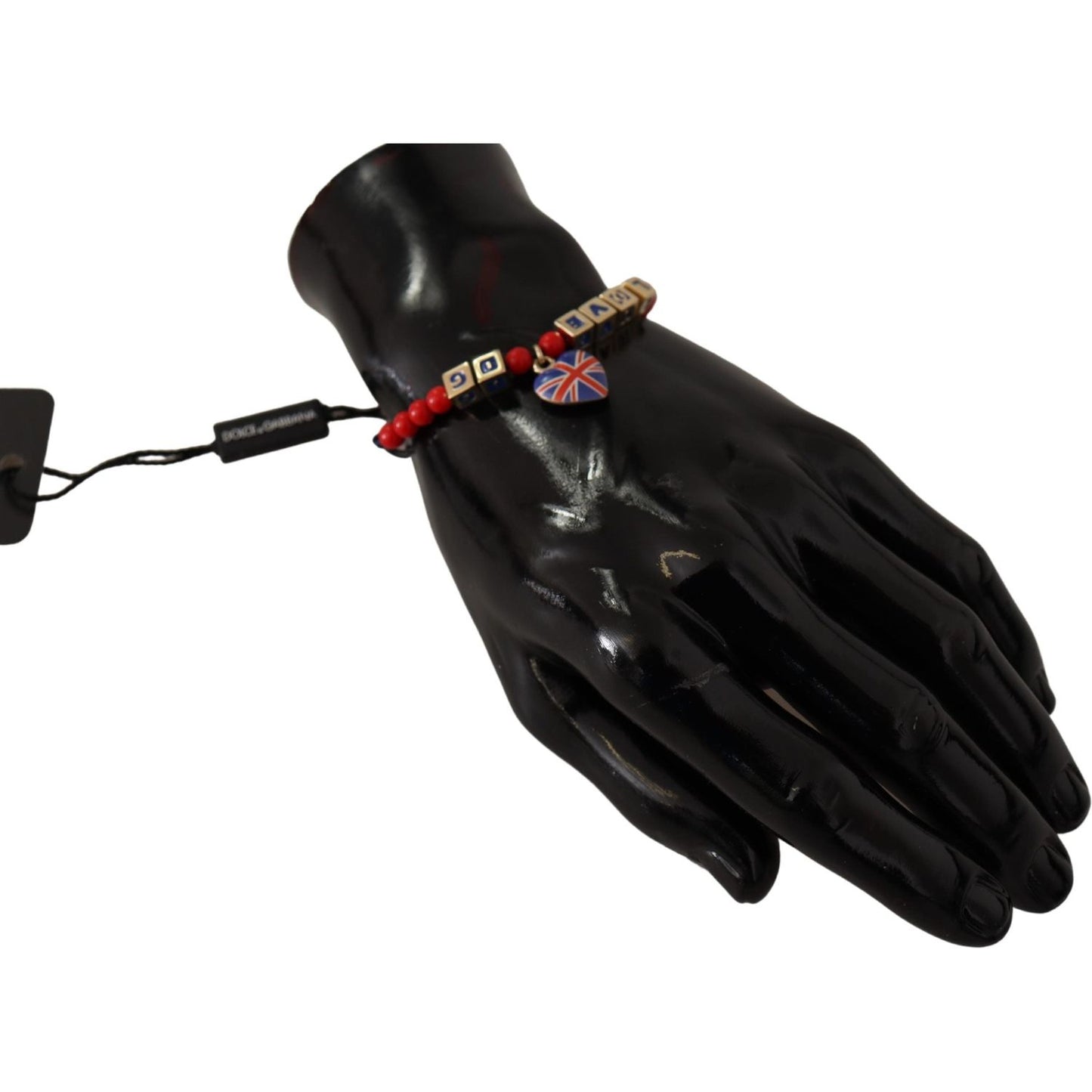 Dolce & Gabbana Red Blue Beaded DG LOVES LONDON Flag Branded Bracelet