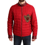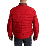 Dolce & Gabbana Red Brocade Bomber Gold Crown Logo Coat Jacket