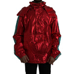 Dolce & Gabbana Red Nylon Hooded Pullover Sweatshirt Jacket