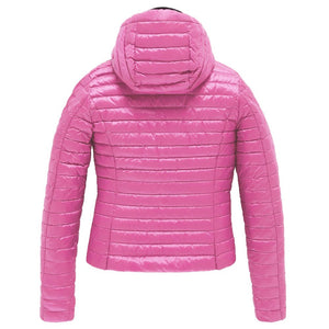 Refrigiwear light jacket in technical fabric, pink in colour, with elasticated hood and genuine duck down padding. Open side pockets and front zip fastening.