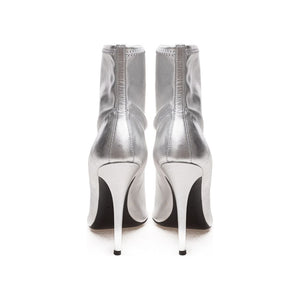 Open Toe Ankle Boots in Silver Giuseppe Zanotti. Silver leather, open toe, elasticized upper part of the boot leg, stiletto heel. Composition:100% Leather-Sku inside:24MG165