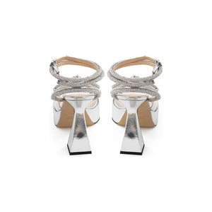 Step into luxury with these MACH & MACH silver leather platforms. Perfect for those who appreciate elegance with a touch of boldness. Their gleaming silver hue and high-quality leather construction make them a standout addition to any wardrobe, destined to dazzle at any event.