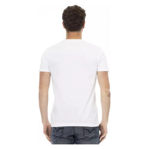 Trussardi Action Sleek White Cotton Blend Tee with Graphic Front
