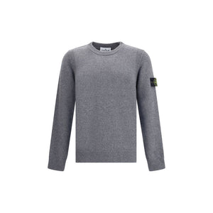 Wool Sweater by Stone Island featuring a ribbed crew neck, a logo patch applied to the left sleeve and ribbed trim at the cuffs and hem. The monochrome design enhances the clean lines of the garment, perfect for a casual yet polished look.