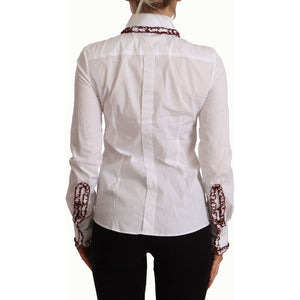 Dolce & Gabbana White Cotton Lace Long Sleeves Ruffle Collar Top Shirt