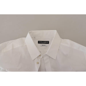 Dolce & Gabbana White Cotton Peacock Feather Formal GOLD Shirt