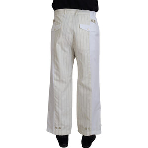 Dolce & Gabbana White Cotton Striped Formal Pants