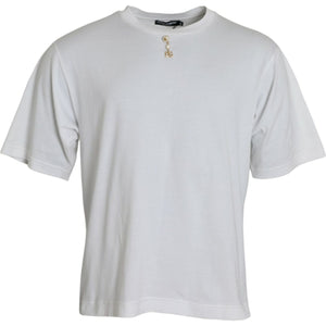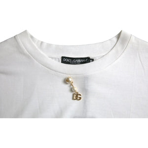 Dolce & Gabbana White Embellished Cotton Crew Neck T-shirt