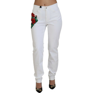 Dolce & Gabbana White Floral Embroidery Skinny Denim Jeans