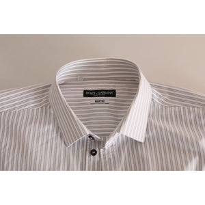• Dolce & Gabbana White MARTINI Cotton Stripe Dress Formal Shirt
