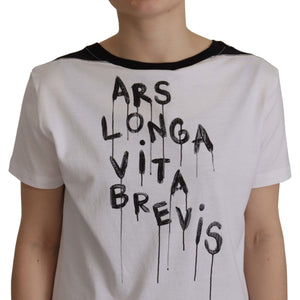 Dolce & Gabbana White Slogan Print Round Neck Cotton T-shirt