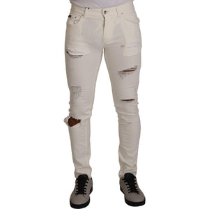 Dolce & Gabbana White Tattered Skinny Cotton Men Denim Jeans